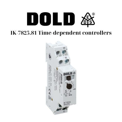 IK-7825.81 Time-dependent controllers Dold là dòng time relay / timer on-delay do hãng E. Dold & Söhne (Đức) sản xuất, chức năng chính là khi thiết bị được cấp điện, nó chờ trong khoảng thời gian đặt trước (delay) rồi mới đóng tiếp điểm đầu ra (on-delay).